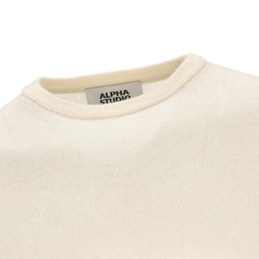 белый кашемировый джемпер с круглым вырезом, ребристым краем и длинными рукавами, гладкой вязки