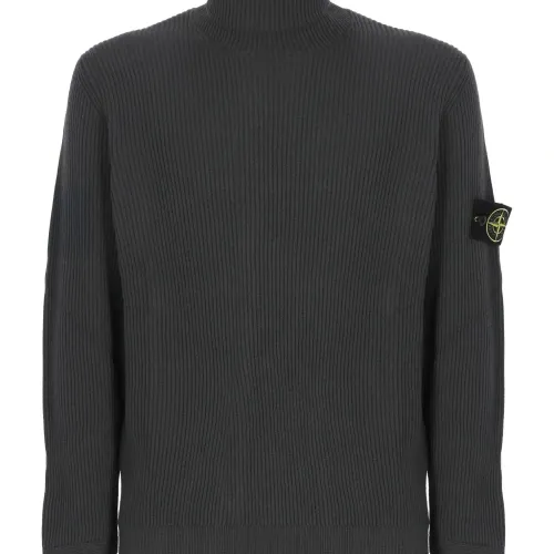 пепельный серый вязаная фактура фирменный мотив "Компас" воротник-гольф длинные рукава