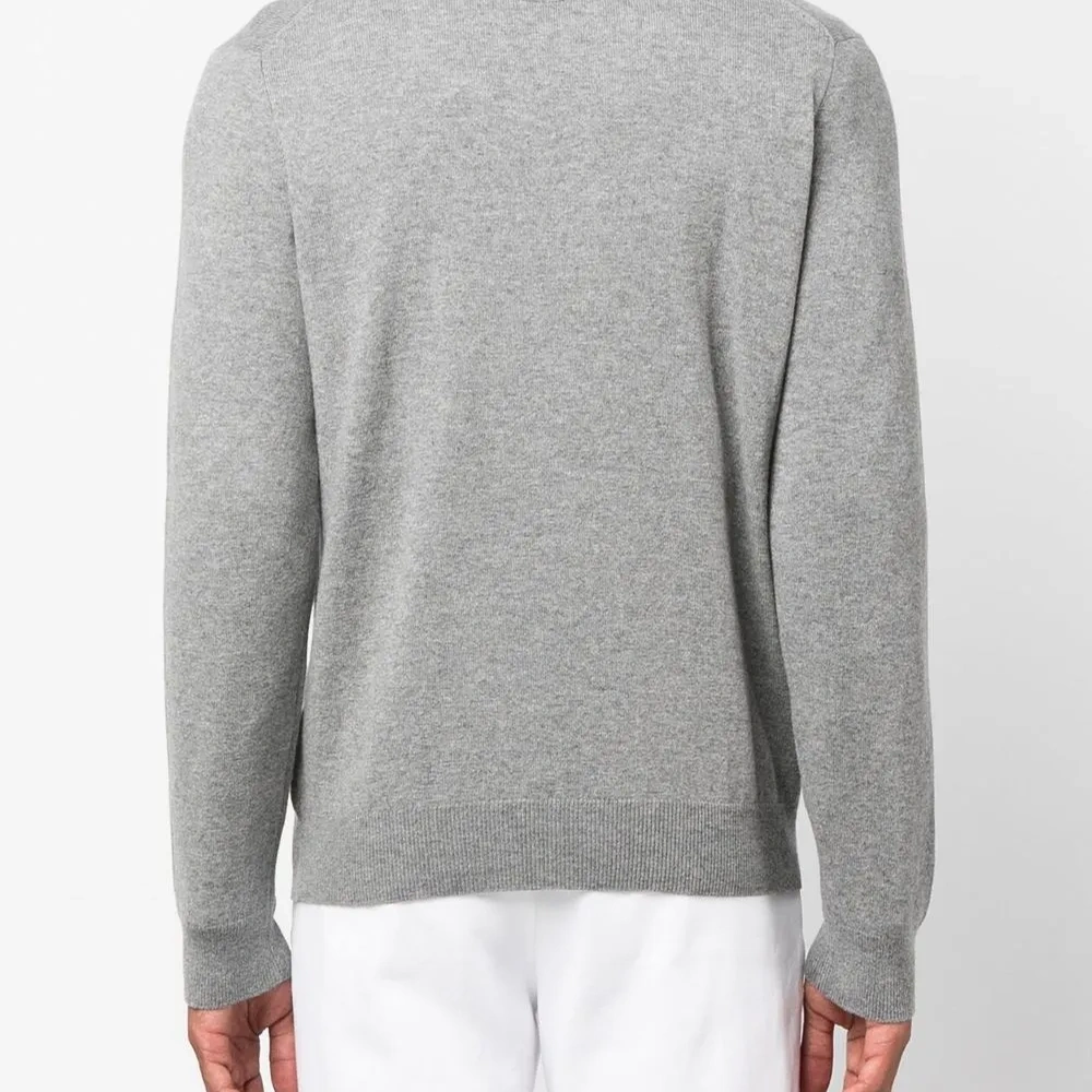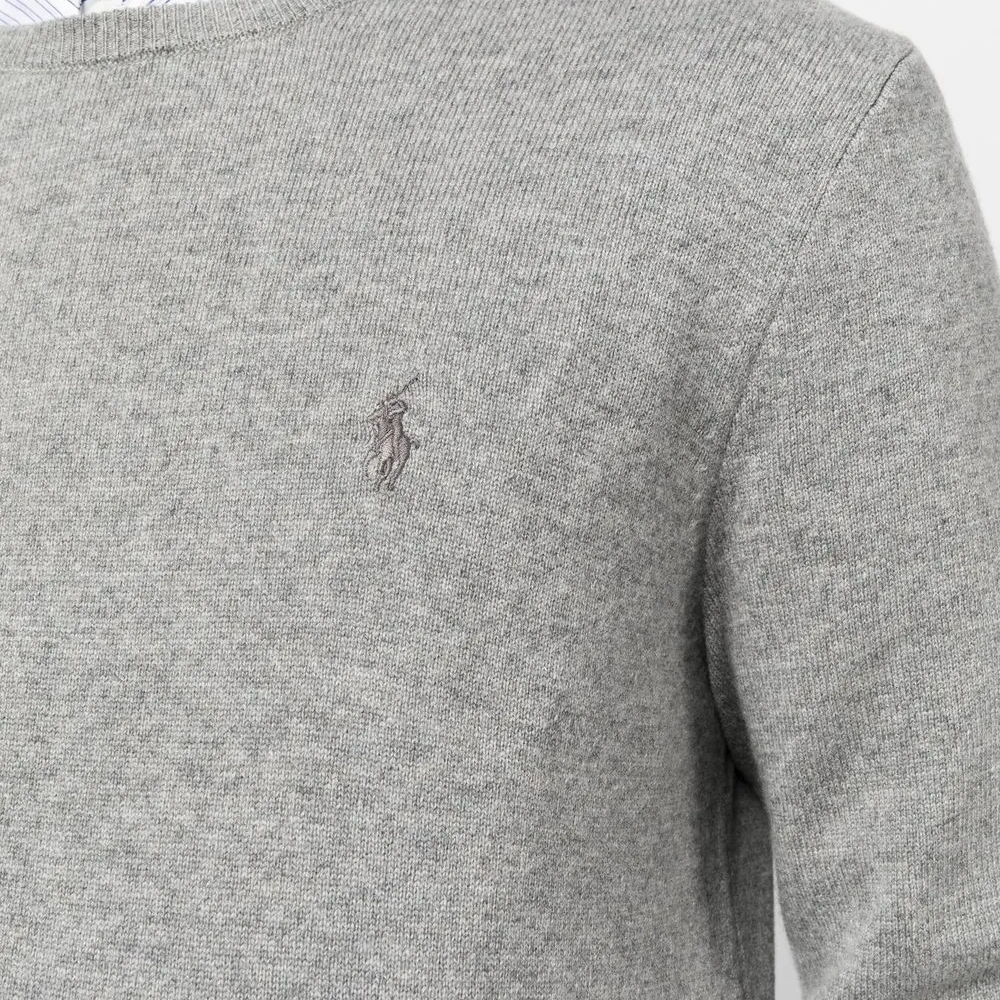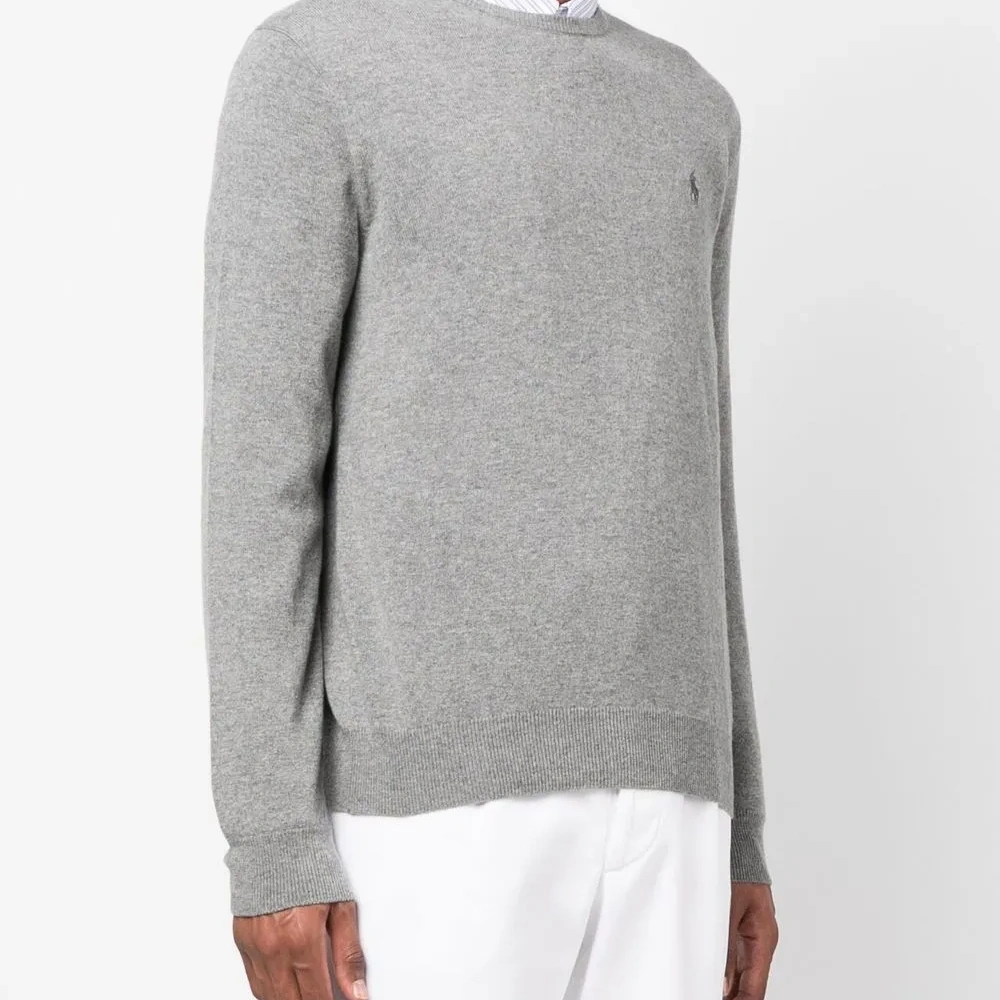 Пепельно-серый, шерсть, знаковый логотип Polo Pony, вязаные края в рубчик, круглый вырез, длинные рукава и прямой подол.