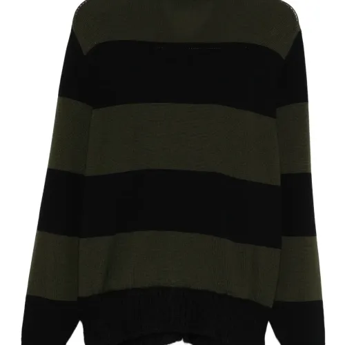черный/зеленый детали в полоску застежка на пуговицы спереди длинные рукава рубчатые манжеты и низ