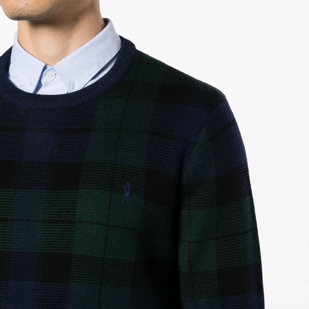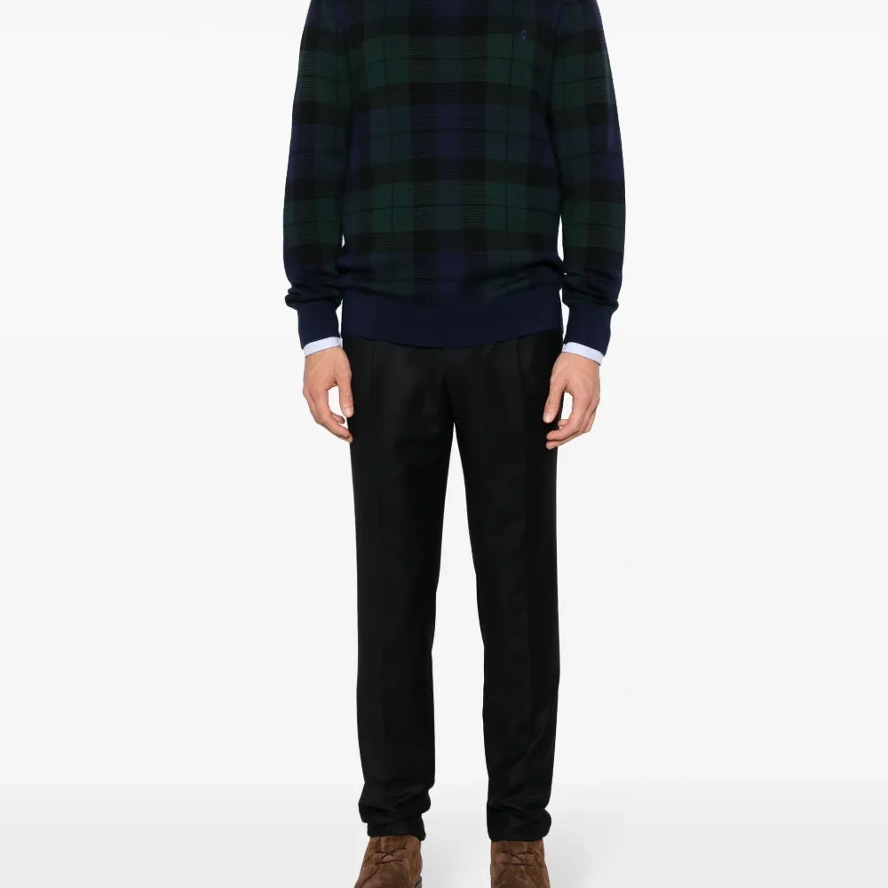 Клетчатый узор, трикотажный материал, знаковый логотип Polo Pony, вышитый логотип на груди и длинные рукава.