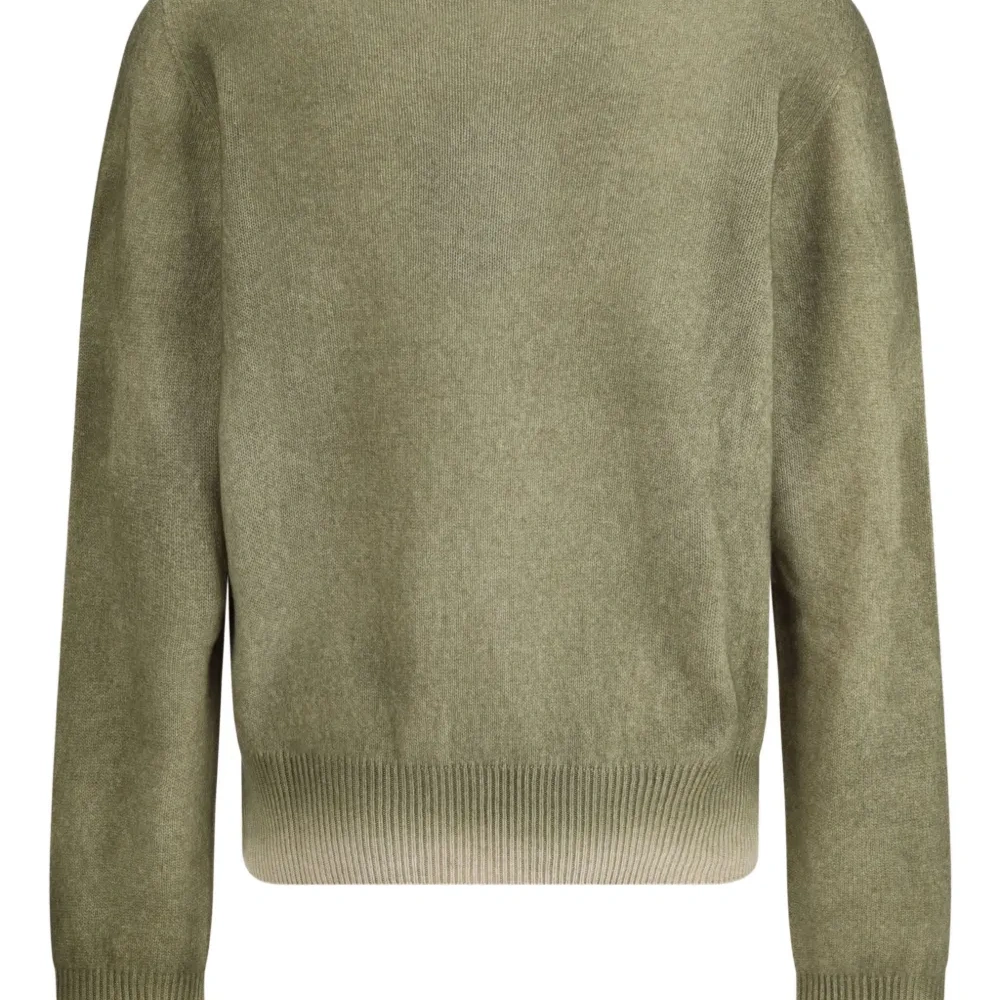 светло-оливковый цвет, круглый вырез, рубчатый низ, рубчатые манжеты, длинные рукава