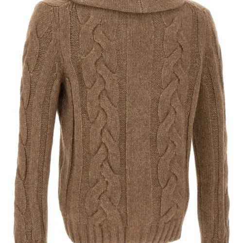 Кардиган с шалевым воротником и вязкой "косы"