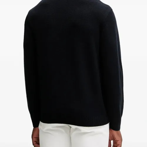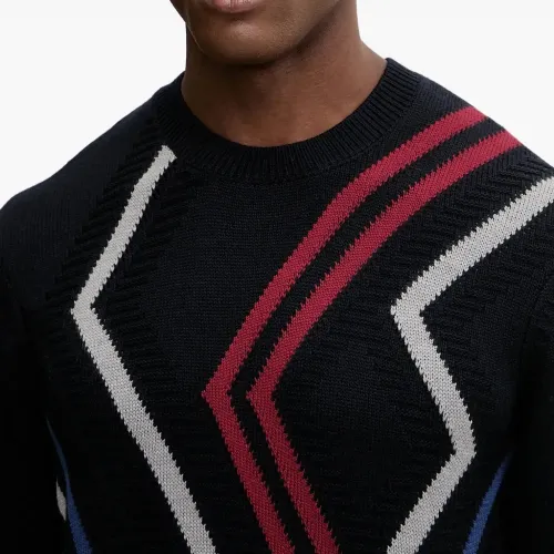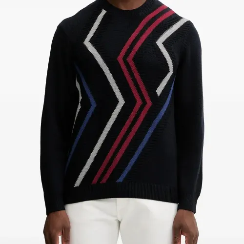 темно-синий зигзагообразный узор, длинные рукава, круглый вырез, ребристый край, ребристые манжеты