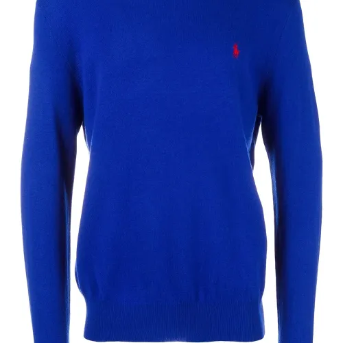 Синий шерстяной джемпер с вышитым логотипом от Polo Ralph Lauren(Поло Ральф Лорен).