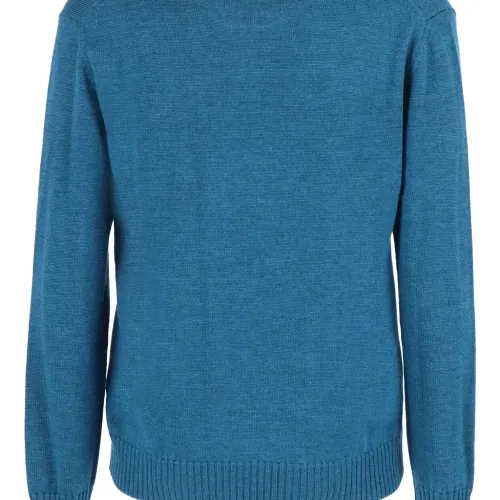 синий, с ребристыми краями снизу, ребристыми манжетами, круглый вырез, длинные рукава