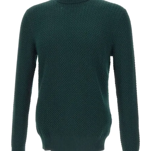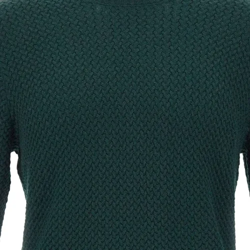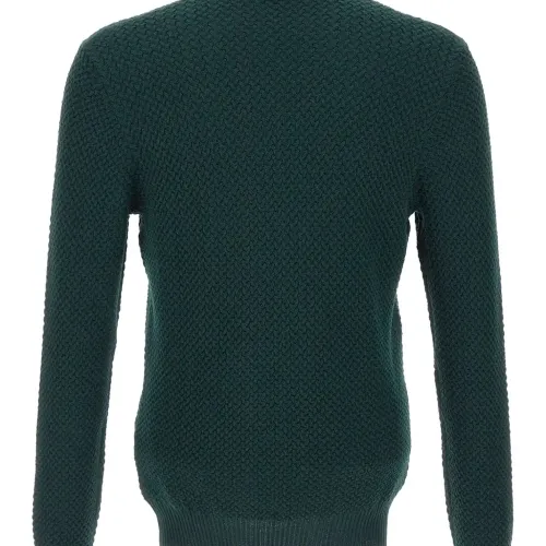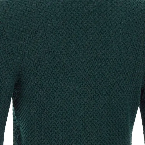 бутылочно-зеленый свитер с фактурной вязкой, ребристыми краями, длинными рукавами и высоким воротником