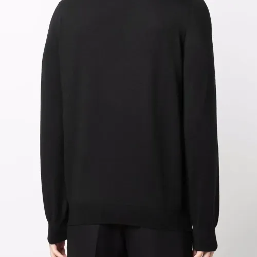 Тонкая вязка, строгий крой, застежка на пуговицах спереди и длинные рукава.