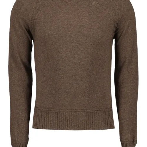 коричневый круглый вырез длинные рукава деталь с логотипом эластичные манжеты и нижний край