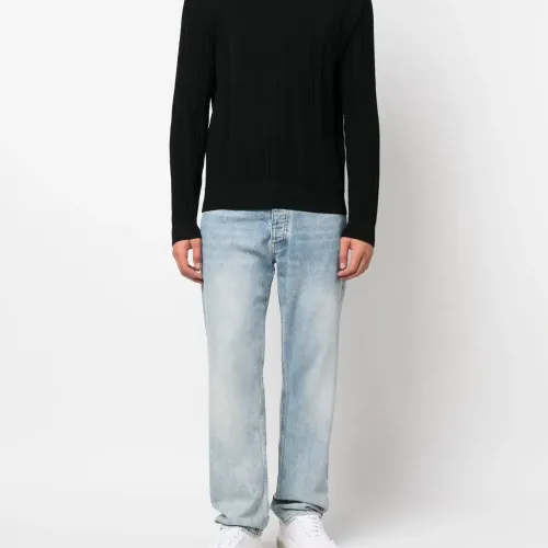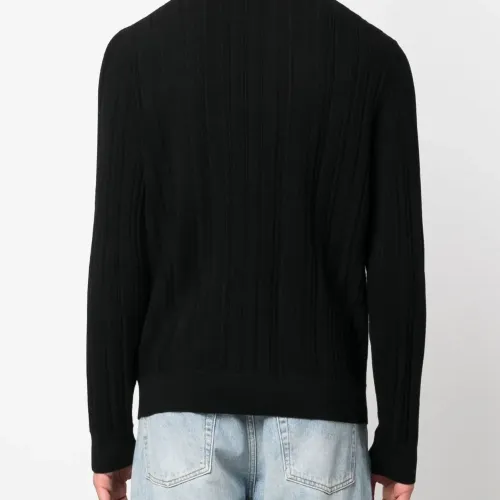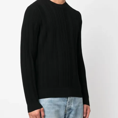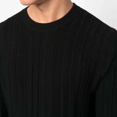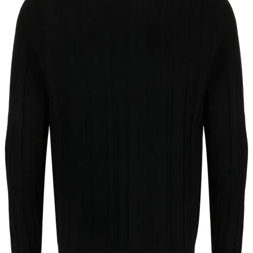 Черный, шерсть мериноса, трикотажный материал, трикотаж в рубчик, круглый вырез, длинные рукава и прямой подол.