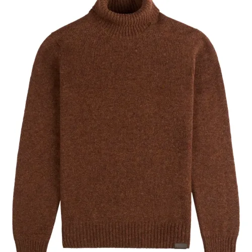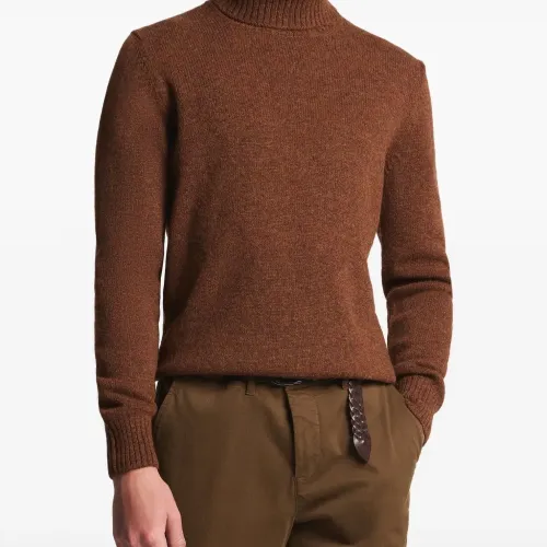 коричневая водолазка с длинными рукавами и рубчатой отделкой