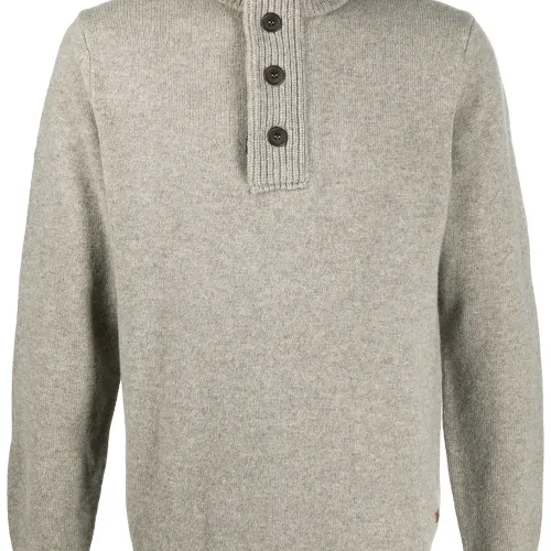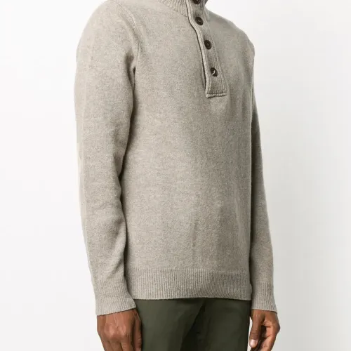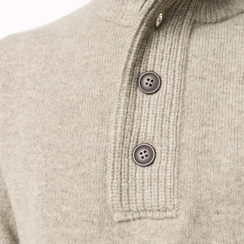 Вязаный дизайн, детали в рубчик, планка на пуговицах спереди, длинные рукава и прямой подол. Цвет: бежевый.
