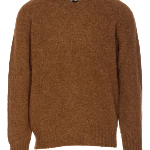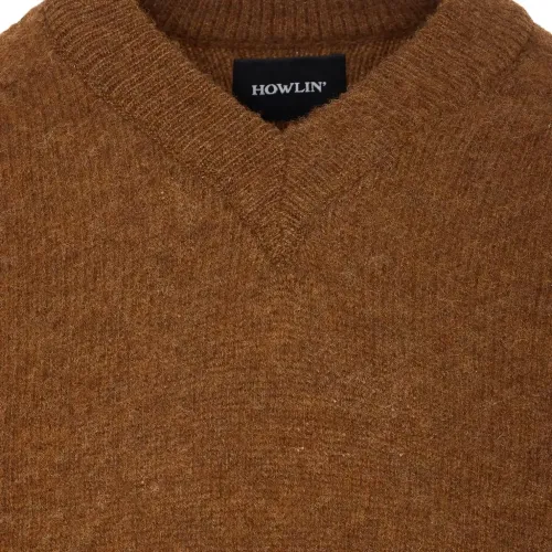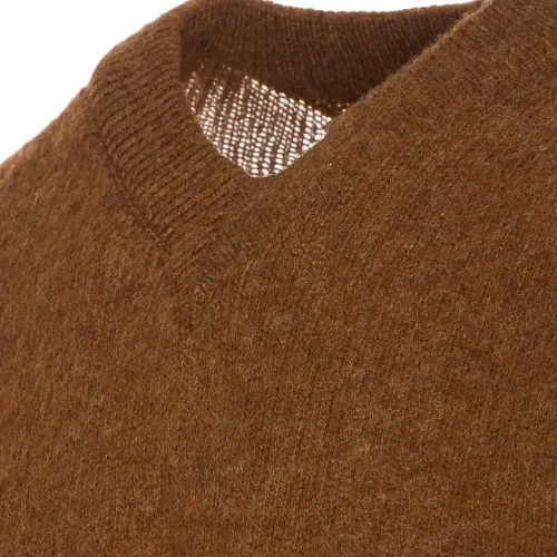 коричневый цвет, длинные рукава, V-образный вырез, ребристый низ, ребристые манжеты