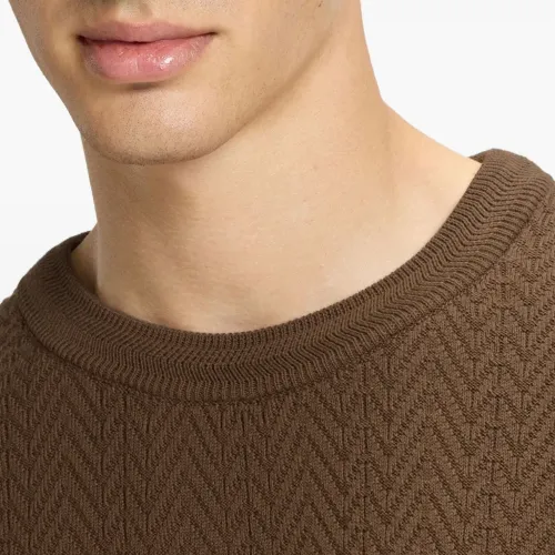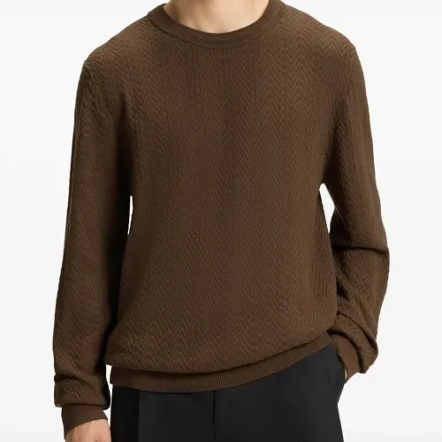 коричневый трикотаж с текстурой, круглый вырез, длинные рукава, манжеты и низ в рубчик