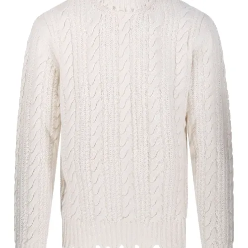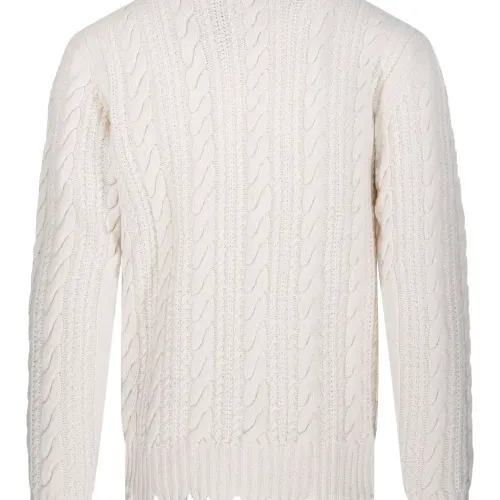 белый хлопок вязаный жгутом потёртый край круглый вырез длинные рукава