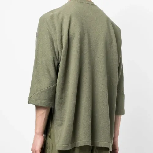 Оливково-зеленый, трикотажный материал, строчка в тон, круглый вырез, рукава по локоть, два накладных кармана спереди и прямой подол. Этот товар как минимум на 50% состоит из материалов, которые признаны более безопасными для окружающей среды, и/или произведены с использованием методов, которые помогают сократить потребление воды и химических веществ. Узнать больше о том, какие товары получают отметку «Ответственный выбор», можно из материала «Как мы оцениваем экологичность и этичность».