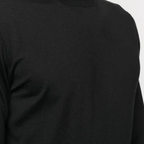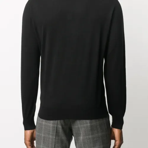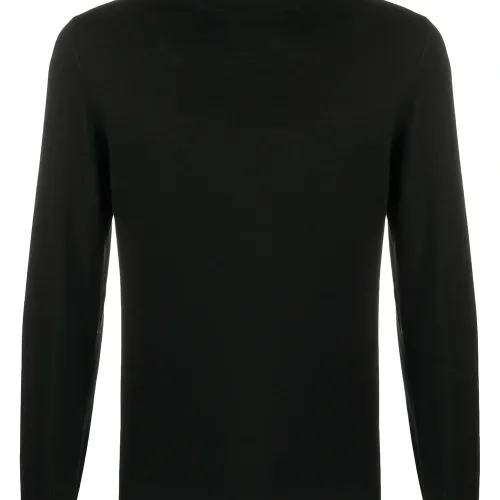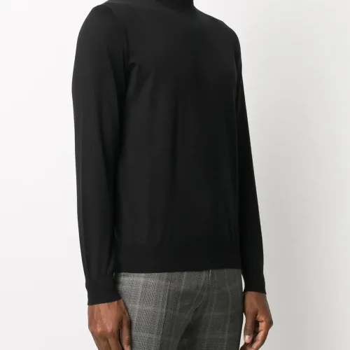 Высокое горлышко с заворотом, длинные рукава, подол в рубчик и манжеты в рубчик. Цвет: черный.