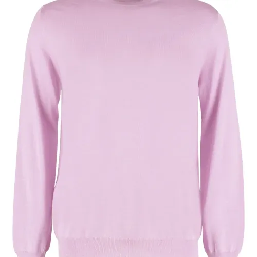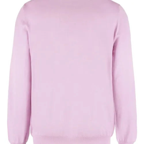 сиренево-розовый смесь кашемира и шелка рубчатые края круглый вырез длинные рукава прямой подол