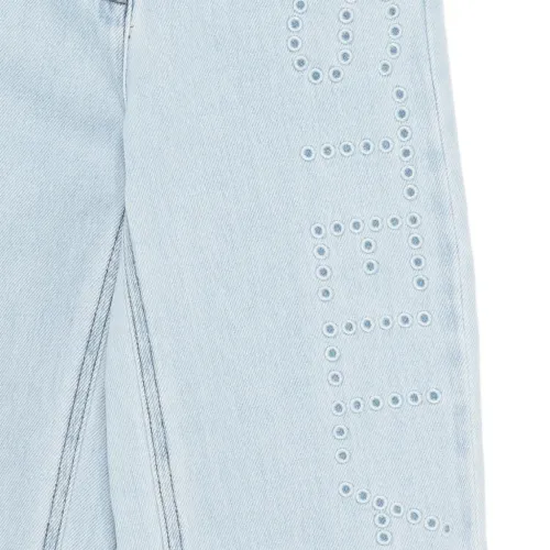 светло-голубой цвет, вышитые детали, дизайн с пятью карманами, шлевки для ремня
