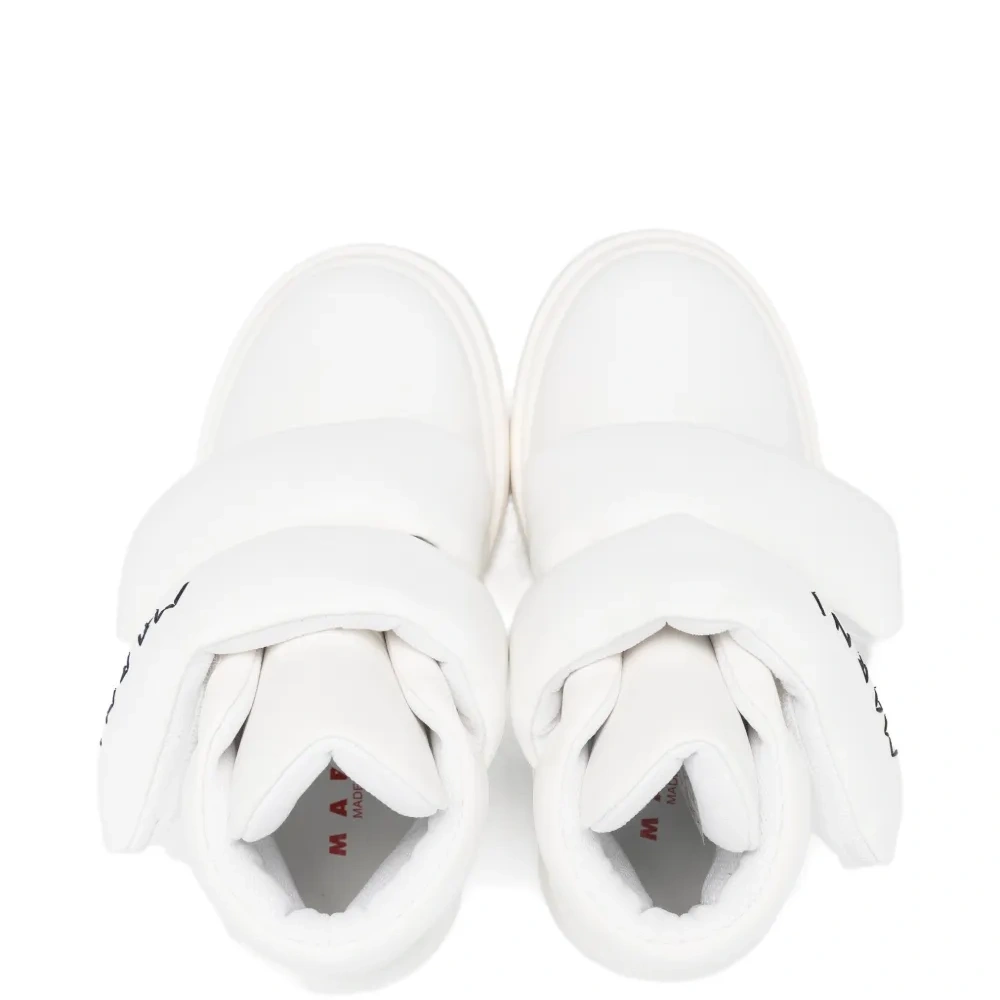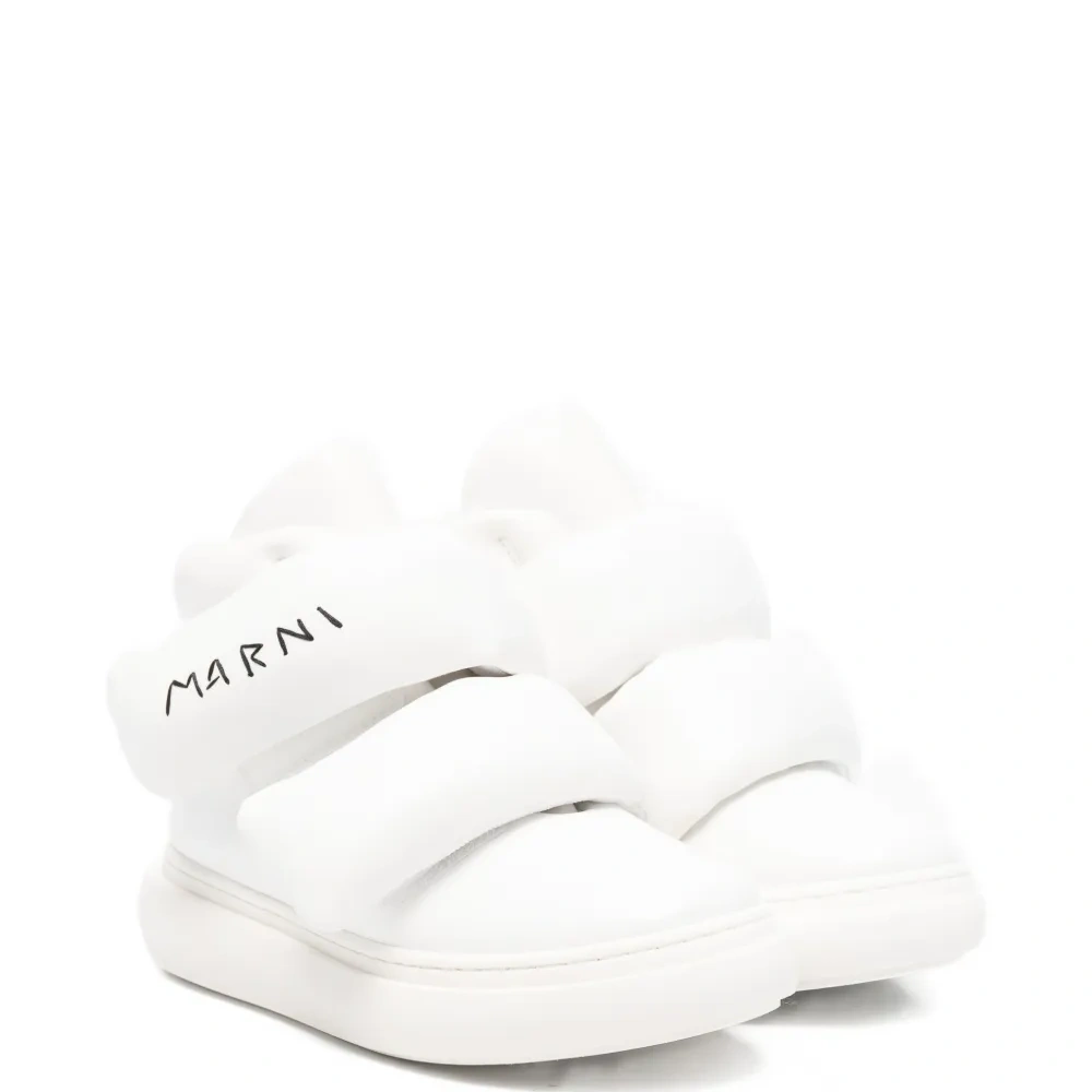 белый с вышитым логотипом, резиновая подошва, круглый носок, плоская подошва