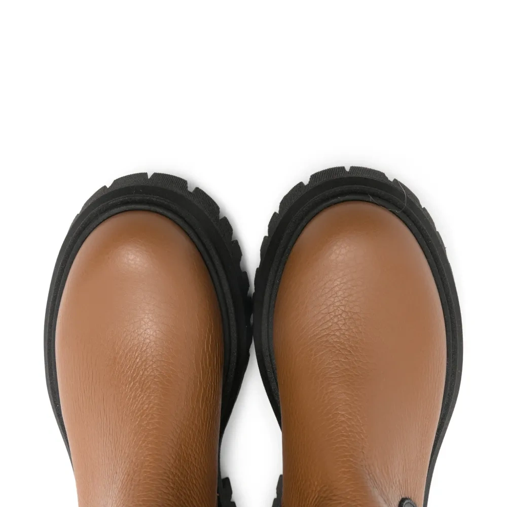 коричневые ботинки с застежкой-молнией с язычком для вытягивания, круглым носком и резиновой подошвой