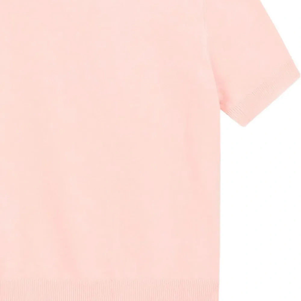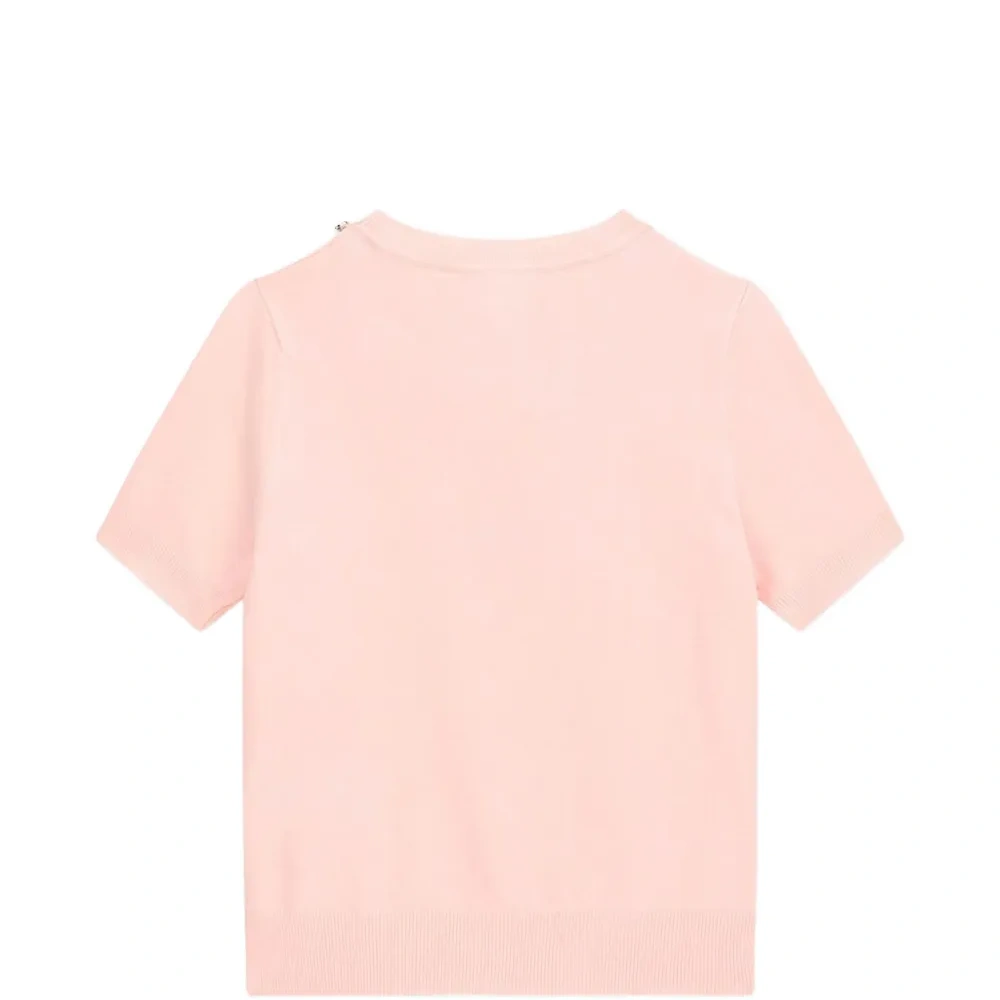 розовая футболка с короткими рукавами, круглым вырезом, украшенная стразами и логотипом с отделкой металлическими заклёпками