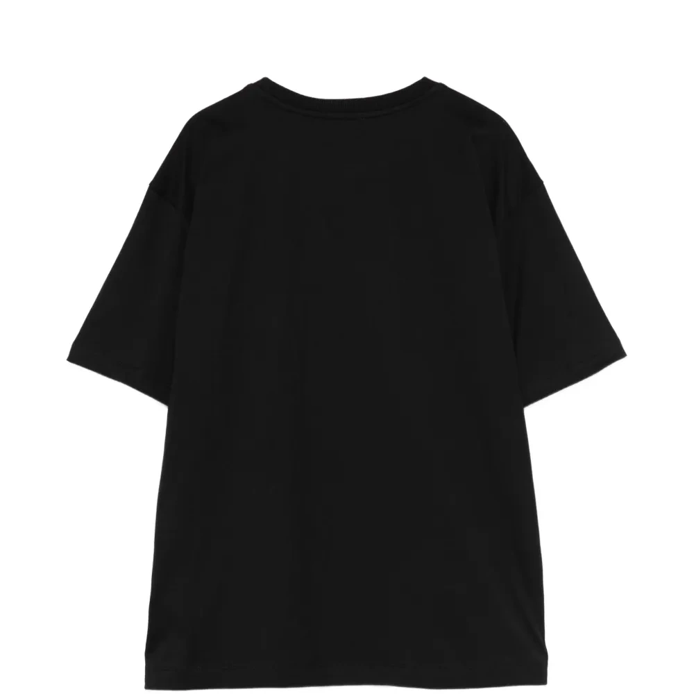 черная футболка с графическим принтом, круглым вырезом и короткими рукавами