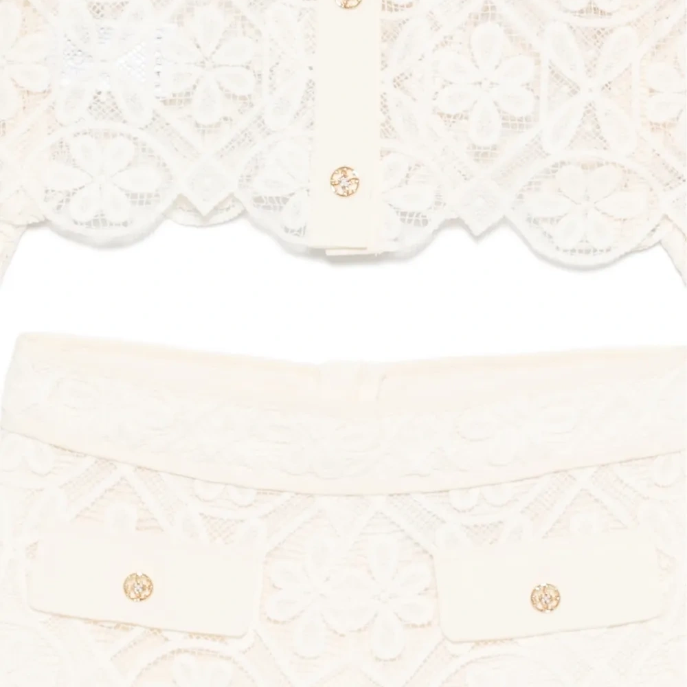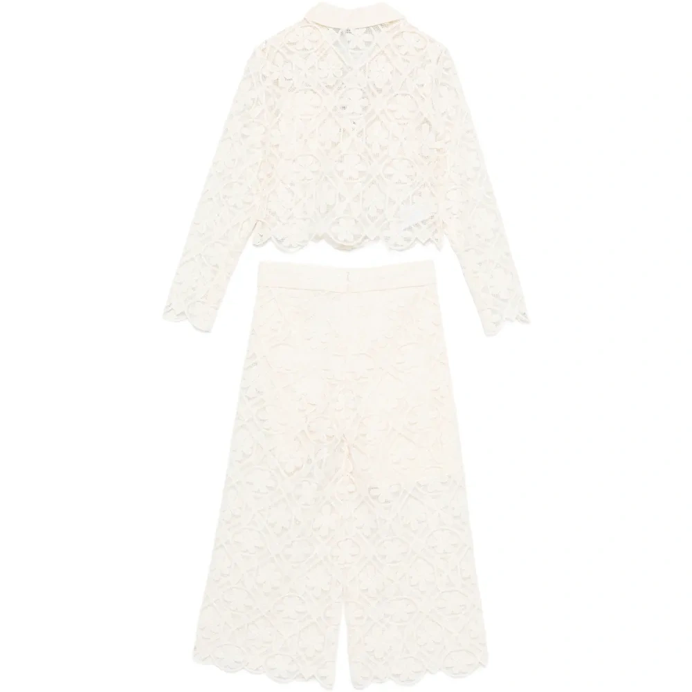 бежевый, цветочный кружевной узор, клапаны на карманах, фигурная (ажурная) отделка по краю, застёжка на пуговицы, воротник