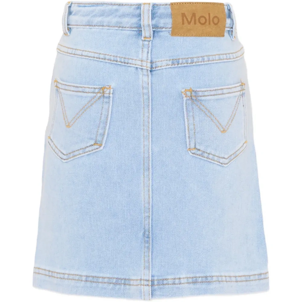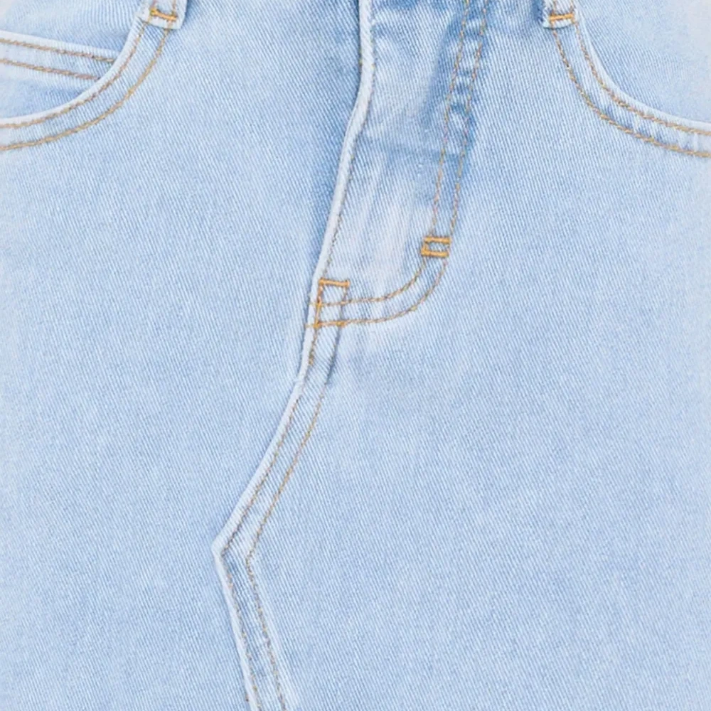 джинсово-синий хлопок, разрез спереди, швы с отделкой, задние карманы, шлевки для ремня
