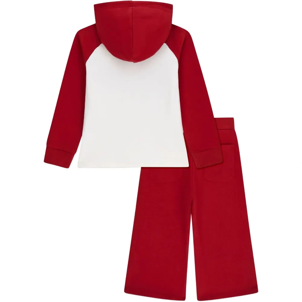 красный/белый принт с сердечками, логотип с принтом, украшения-стразы, застежка-молния, длинные рукава, несъемный капюшон, эластичный пояс, широкий крой брюк