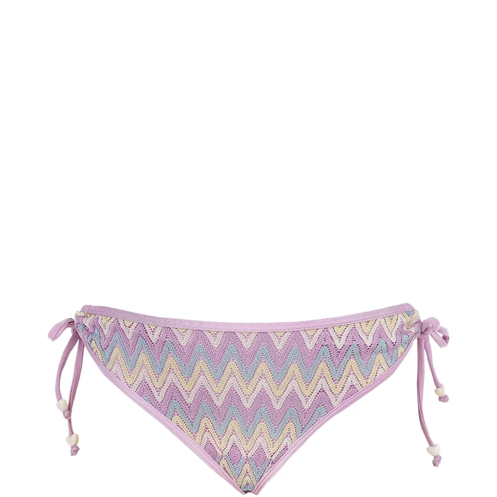 фиолетовый галстук с зигзагообразным узором Обратите внимание: примеряйте купальники поверх собственного белья.