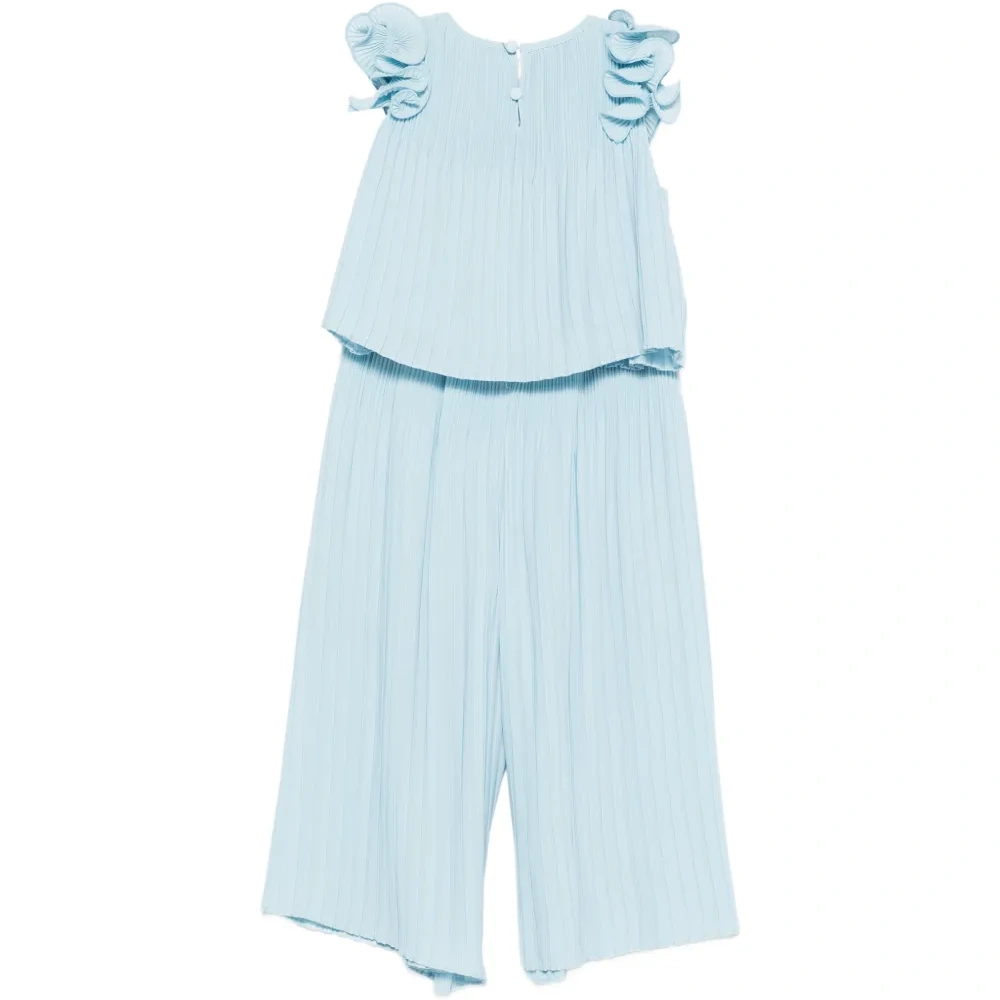 небесно-голубой цвет, плиссированный дизайн, детали с оборками