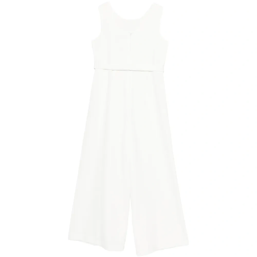 белый комбинезон без рукавов с асимметричным воротником, бантом и широкими штанинами