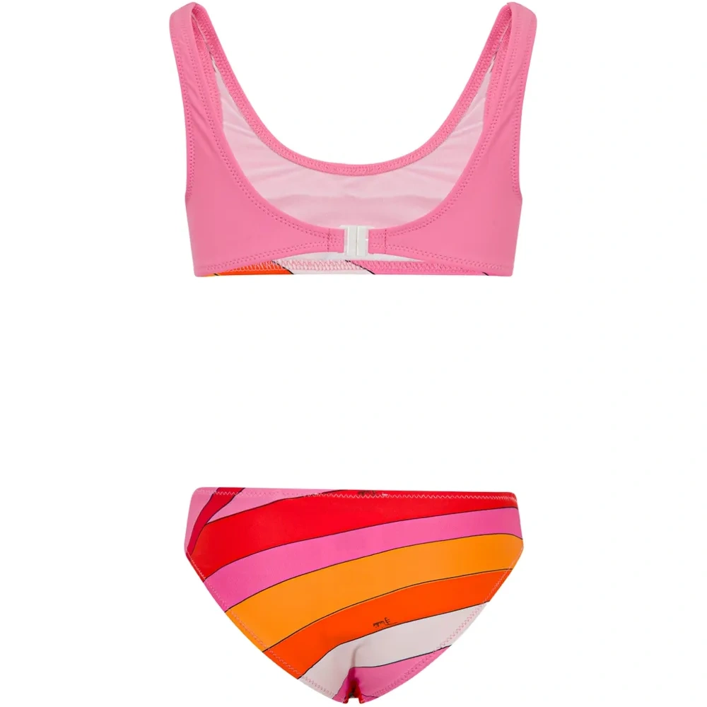 розовый комплект из двух предметов с полосатым дизайном, с круглым вырезом. Примеряйте купальники поверх собственного белья.