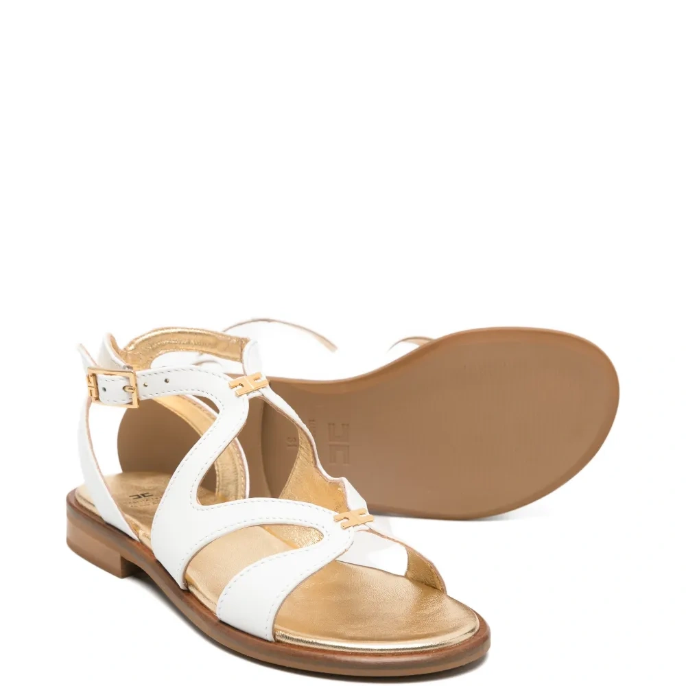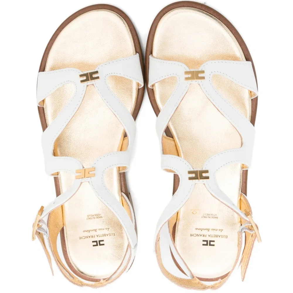 белая кожаная обувь с пряжкой, логотипом и плоской подошвой
