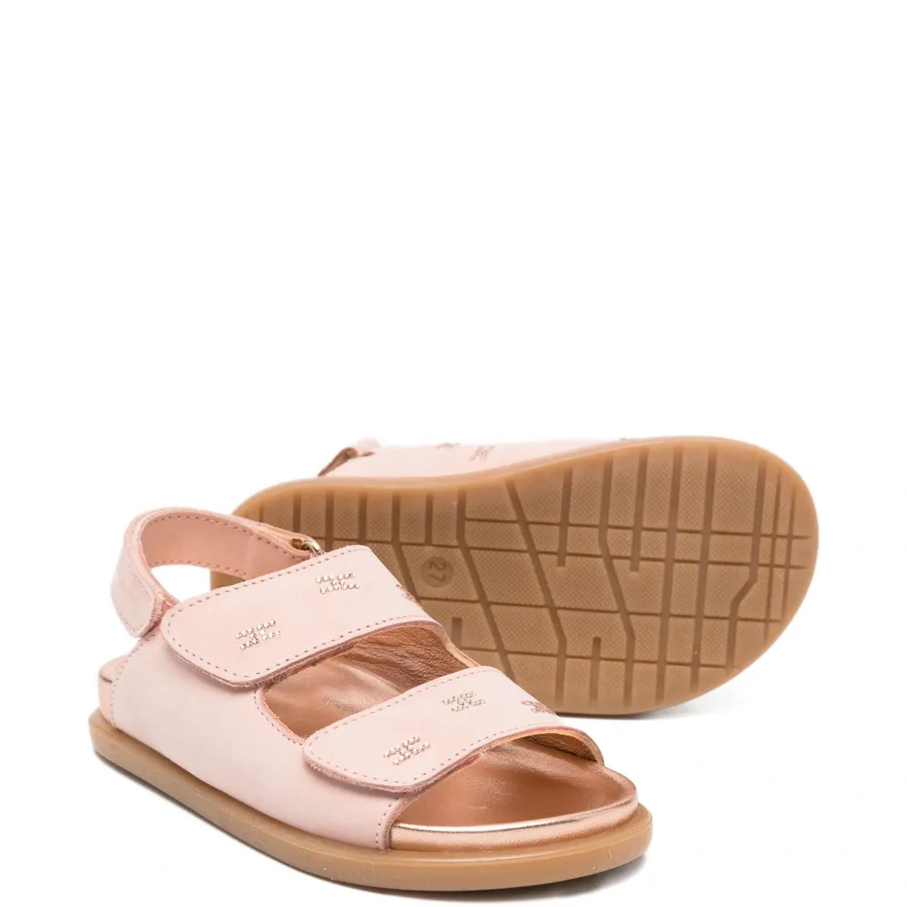розовые туфли на плоской подошве с застежкой-липучкой и украшением в виде логотипа