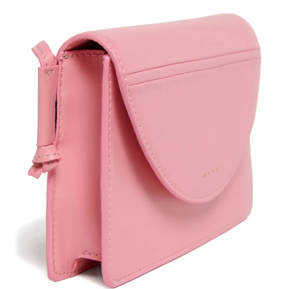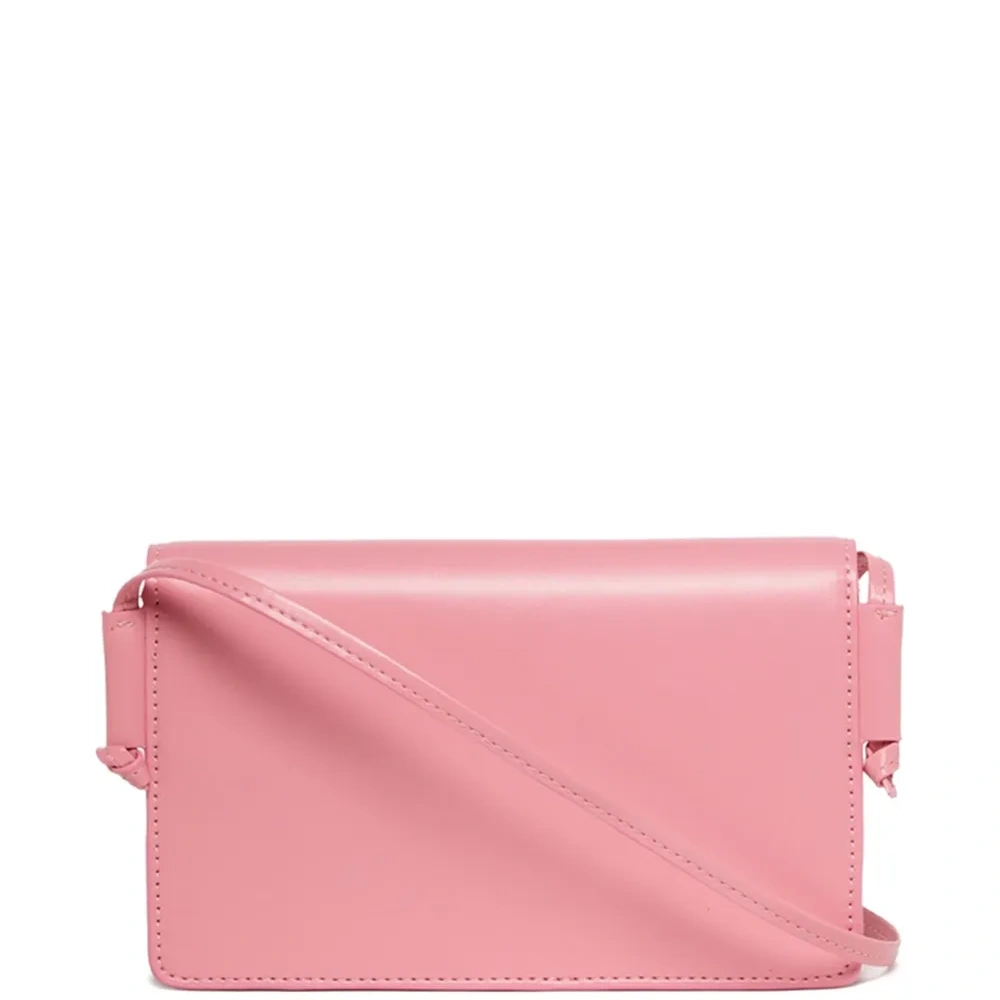 розовая сумка через плечо с прошивкой, тиснённым логотипом и клапаном