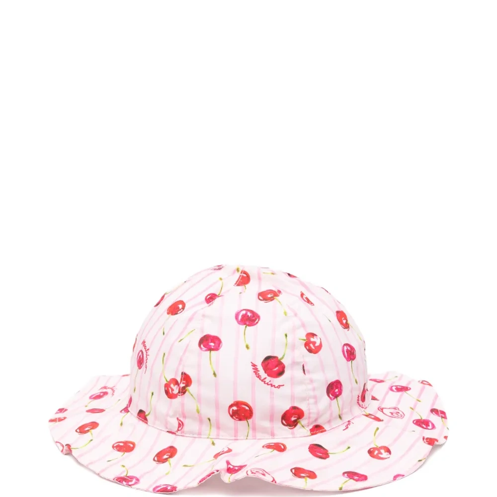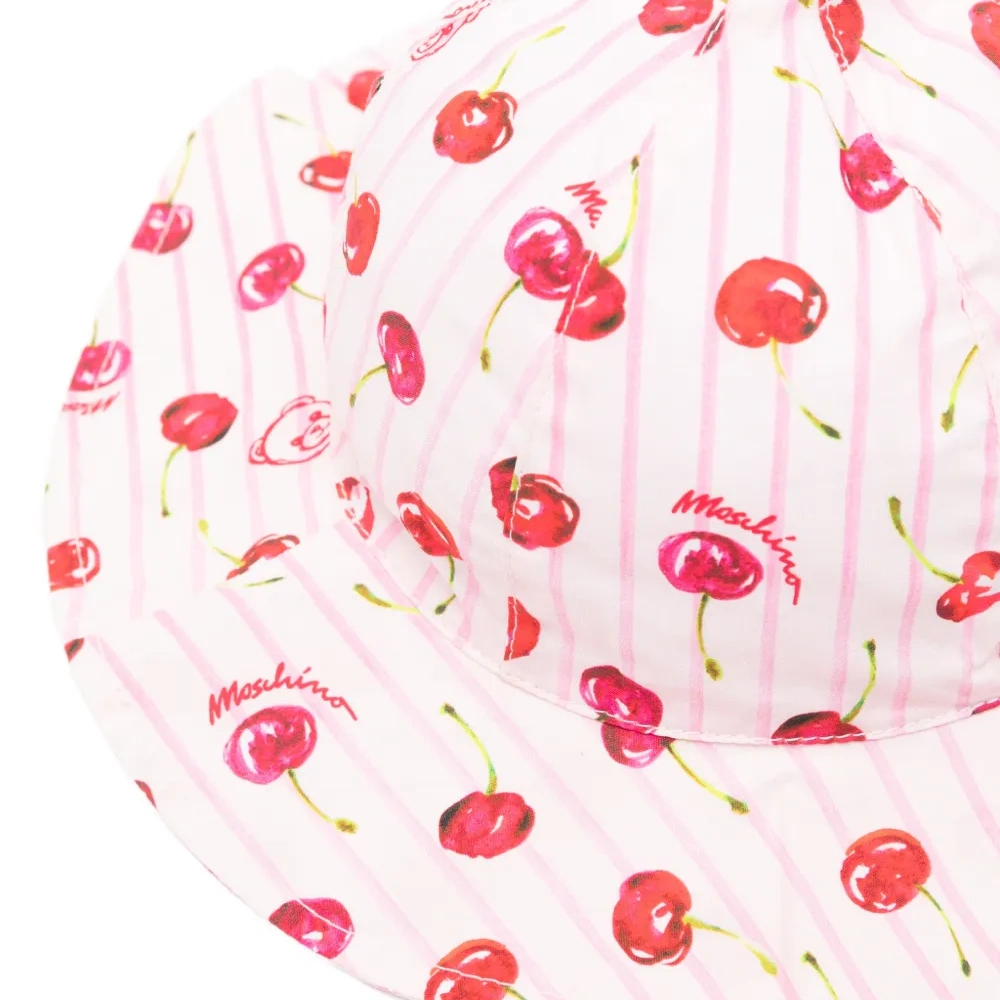 белый с полосатым узором, принтом вишни и отделкой с оборками