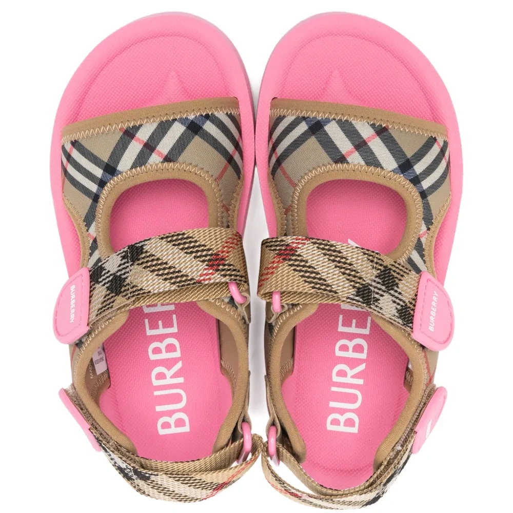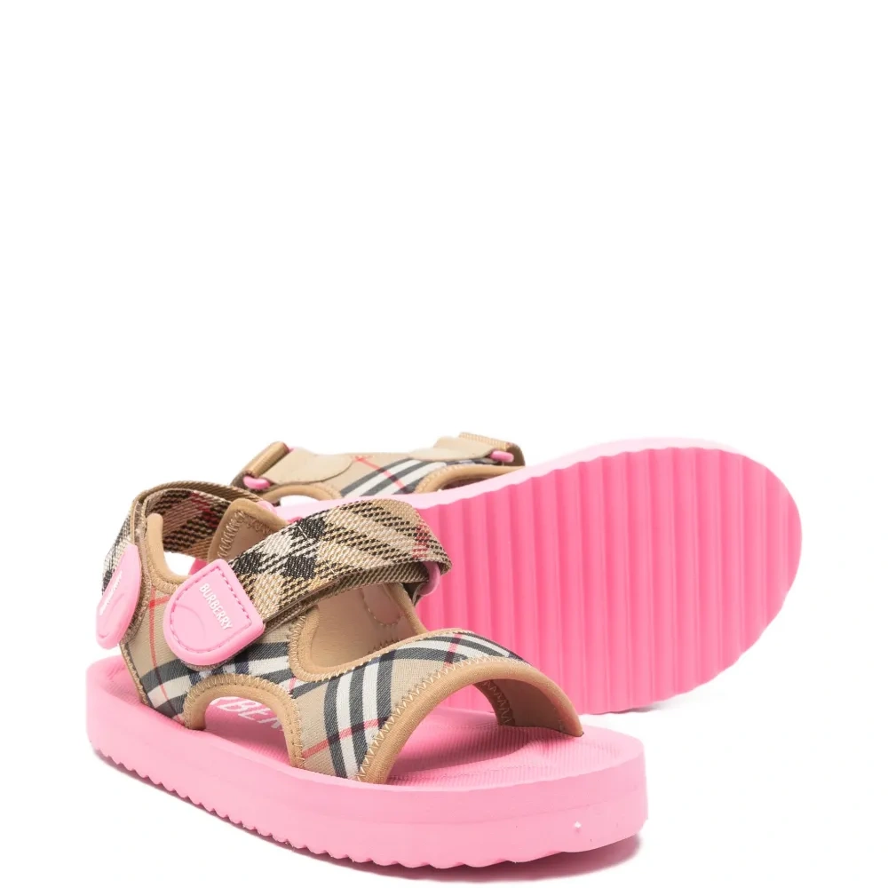 розовый ремешок в клетку, открытый носок, рифленая подошва