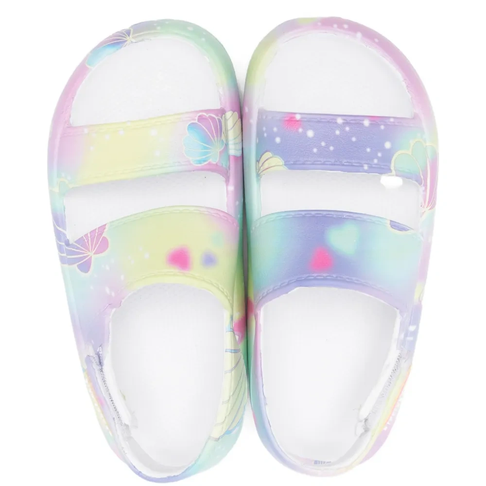 зеленый, разноцветный цветочный принт, ремешок, резиновая подошва