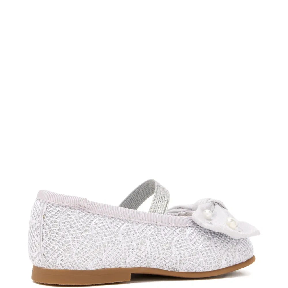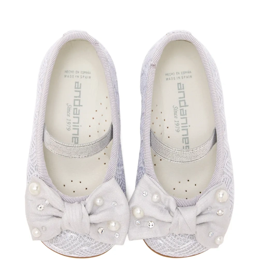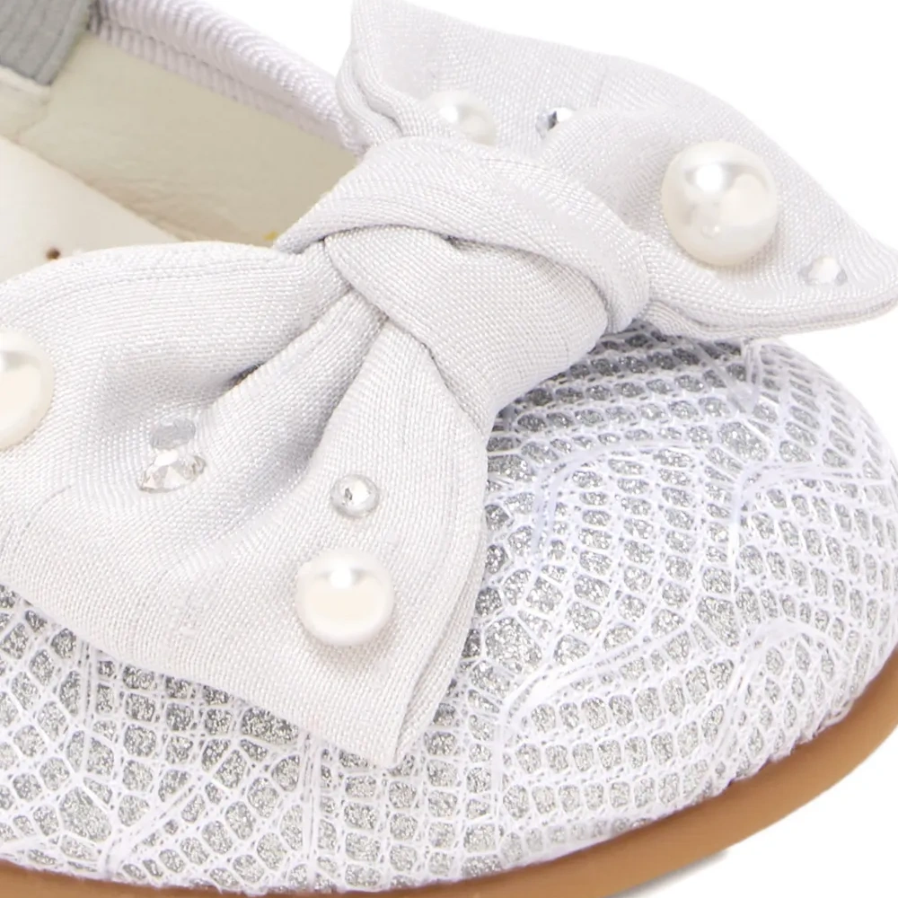 серебристый бант, отделка искусственным жемчугом, круглый носок, фирменная стелька