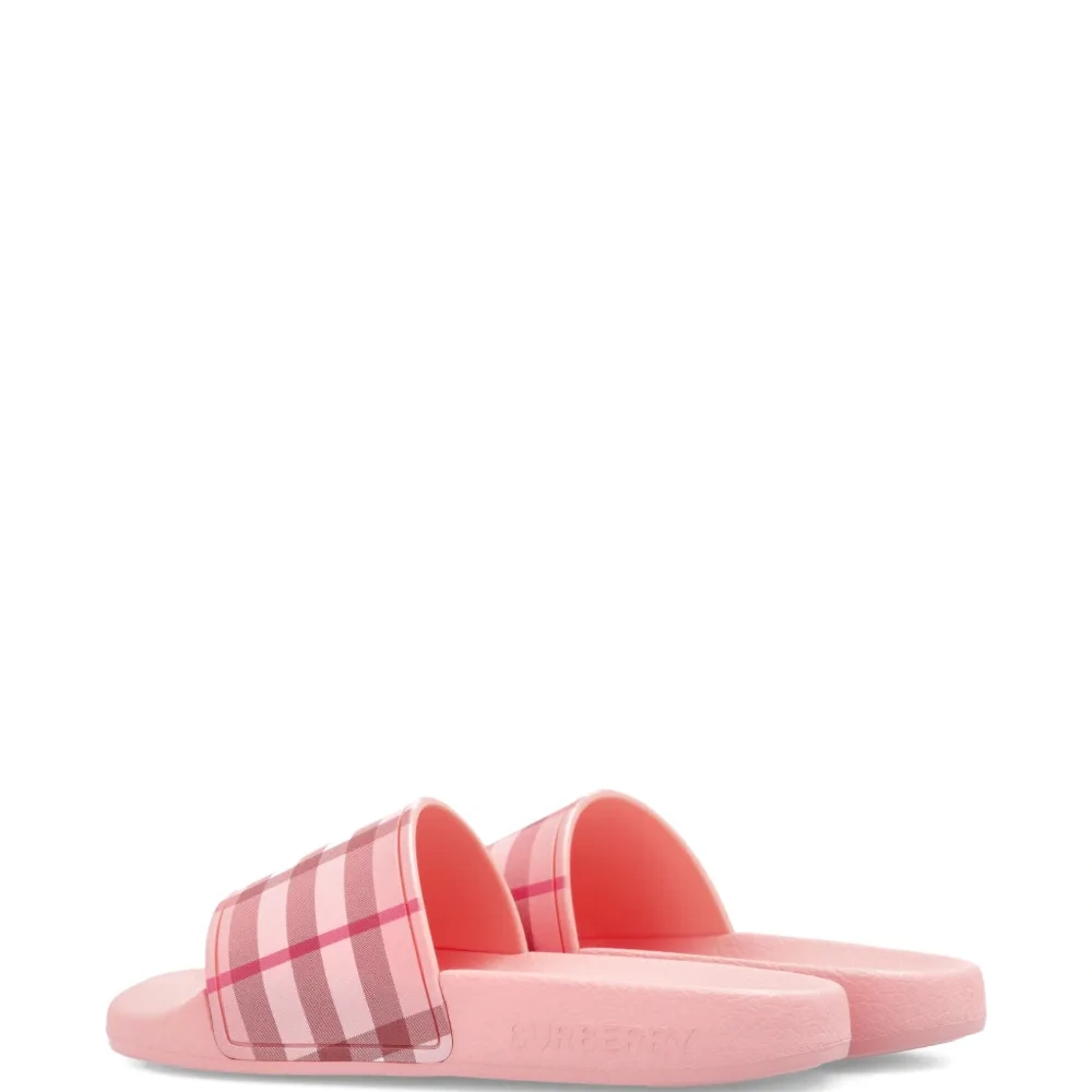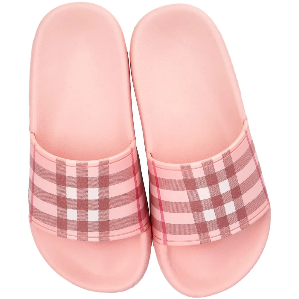 розовый с клетчатым узором, модель без застежек, открытый носок, формованная стелька