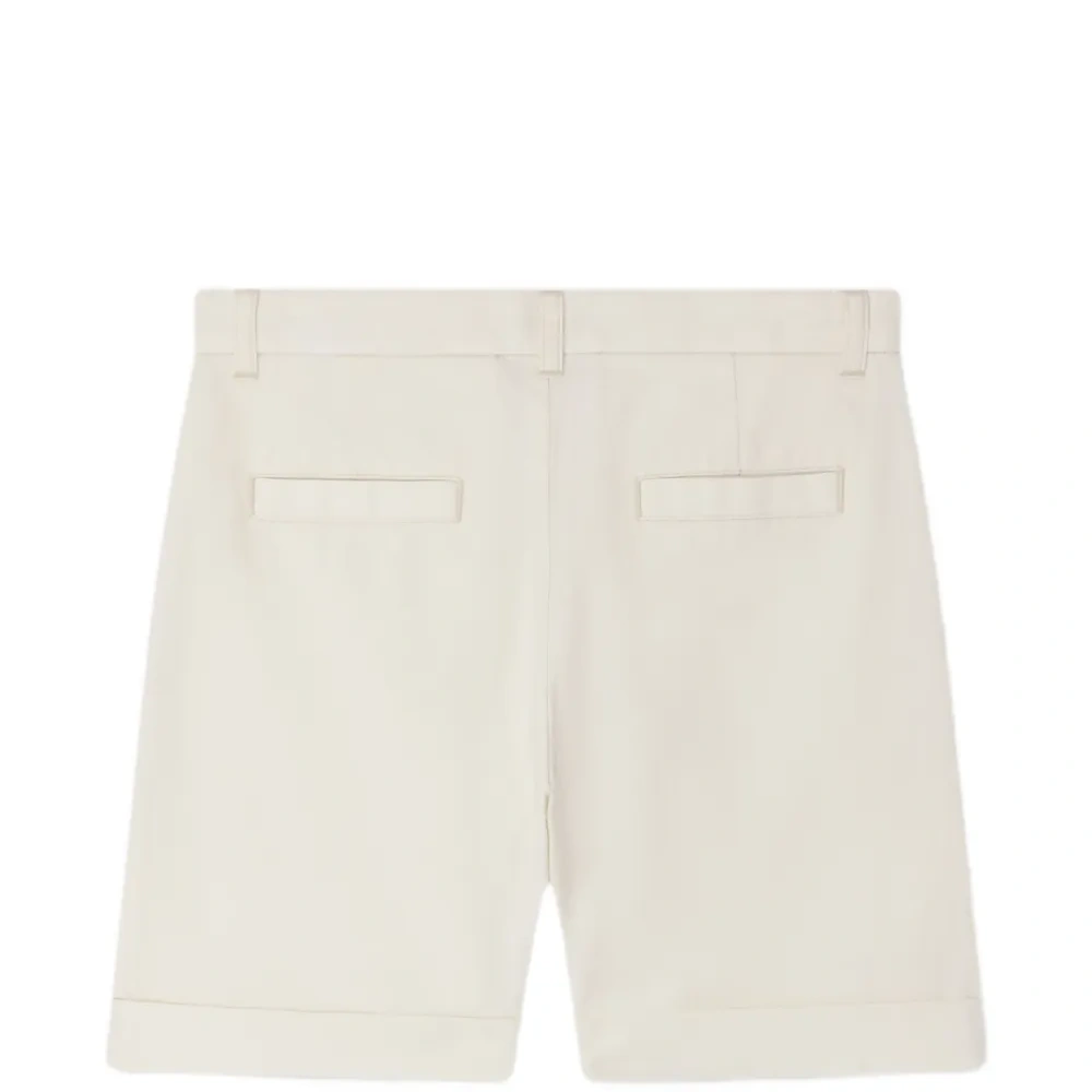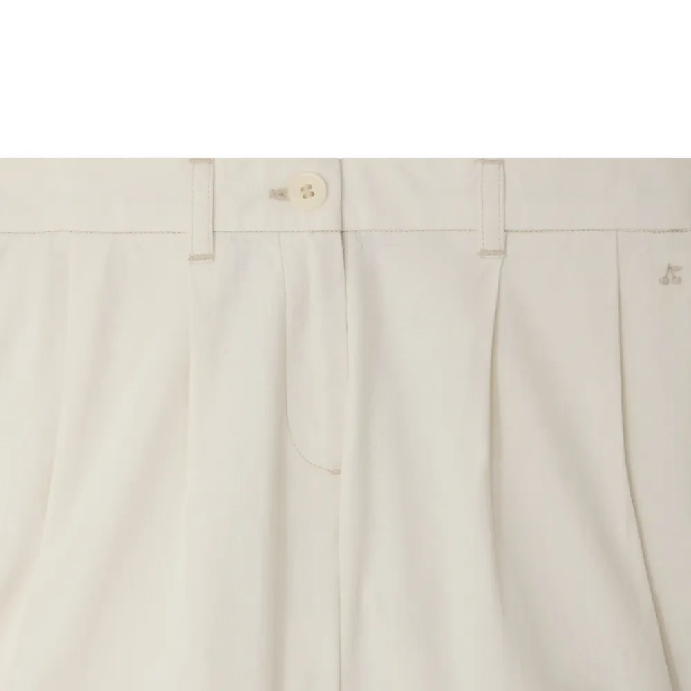 молочно-белые плиссированные брюки с отворотами, застежкой на пуговицы, шлевками для ремня и задними прорезными карманами