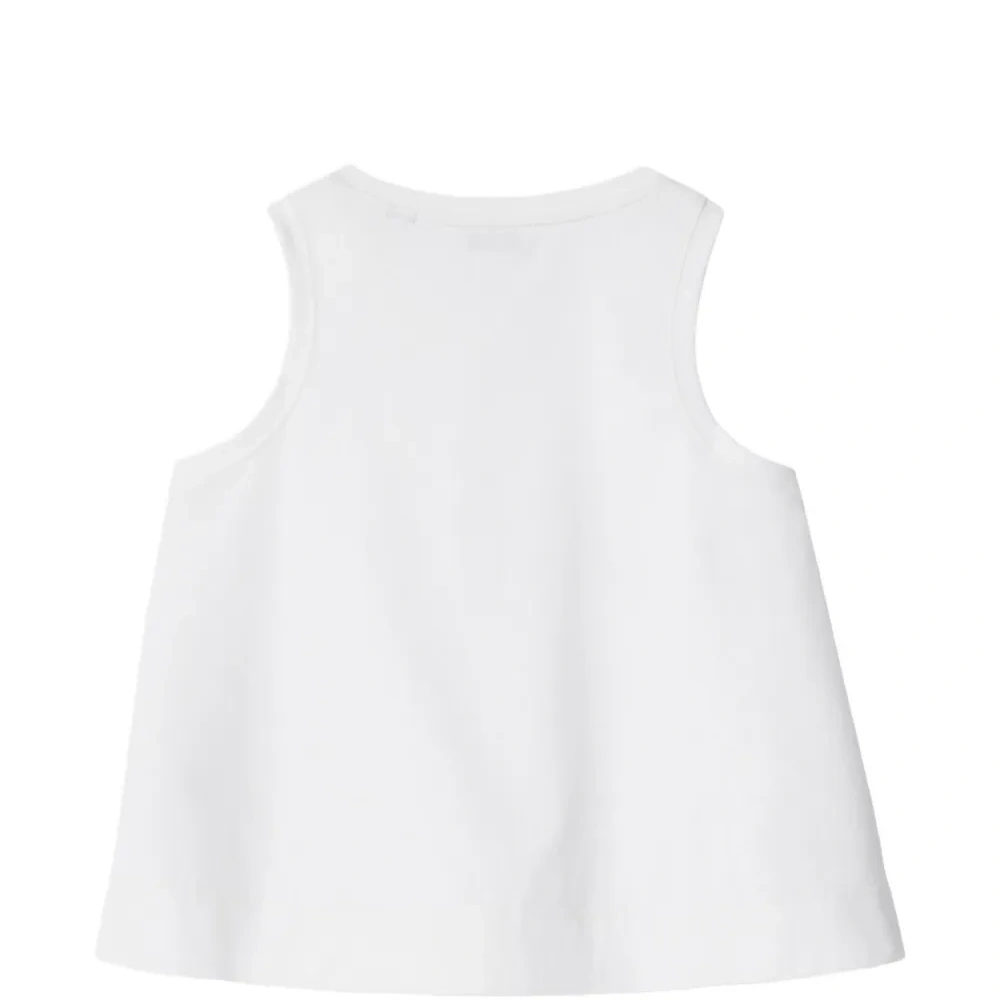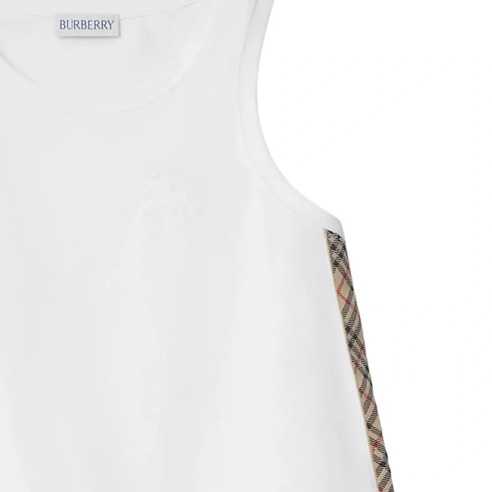 белый топ без рукавов с круглым вырезом, украшенный вышивкой и отделкой в клетку