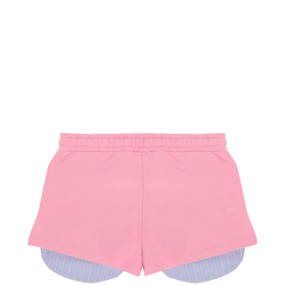 конфетно-розовый пояс на резинке с полосатыми деталями и вышитым логотипом
