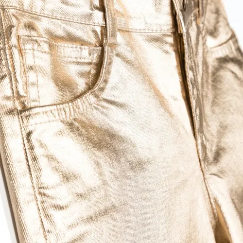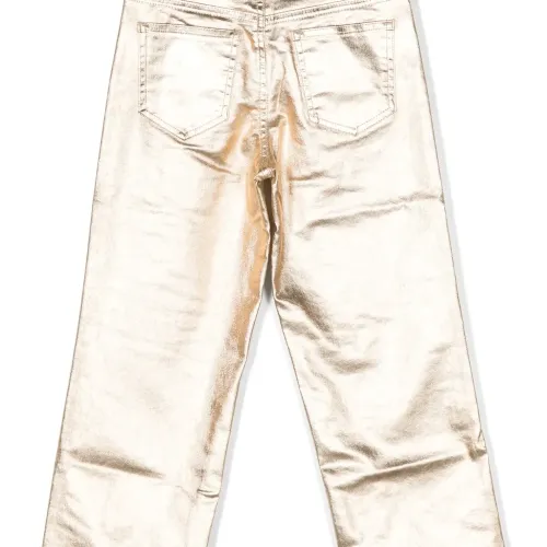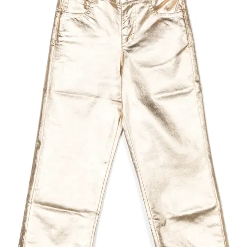 Metallic-finish straight-leg trousers