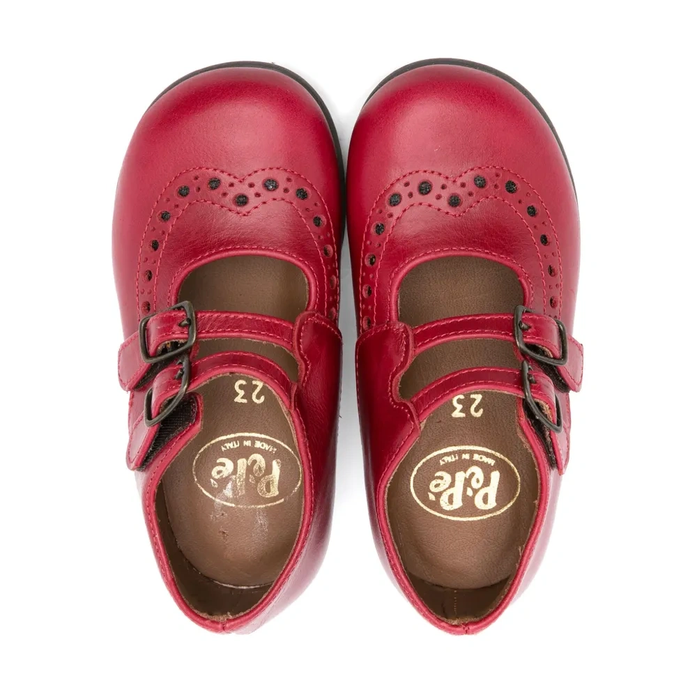 Телячья кожа, гладкая текстура кожи, строчка в тон, перфорация, закругленный носок, застежка на пряжке, кожаная стелька с логотипом и плоская резиновая подошва.