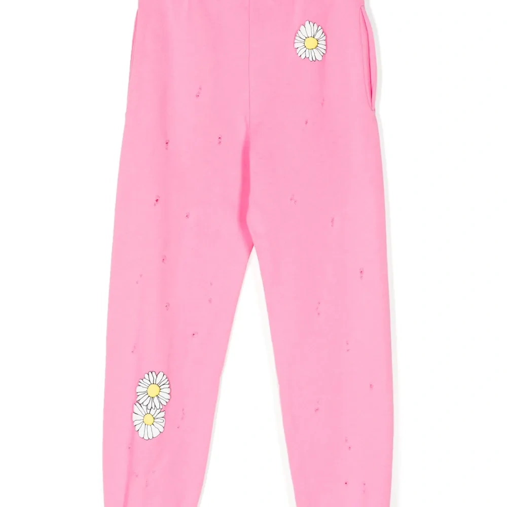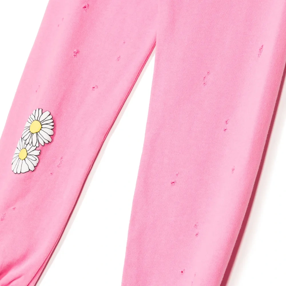 Нежно-розовый, хлопок, сплошной цветочный принт, искусственно состаренное покрытие, эластичный пояс, боковой карман и эластичные манжеты.