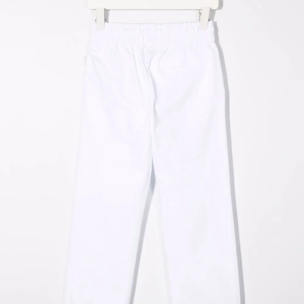 Принт с изображением сердца, принт с логотипом, эластичные манжеты, эластичный пояс на шнурке и два вшитых кармана по бокам. Цвет: белый.