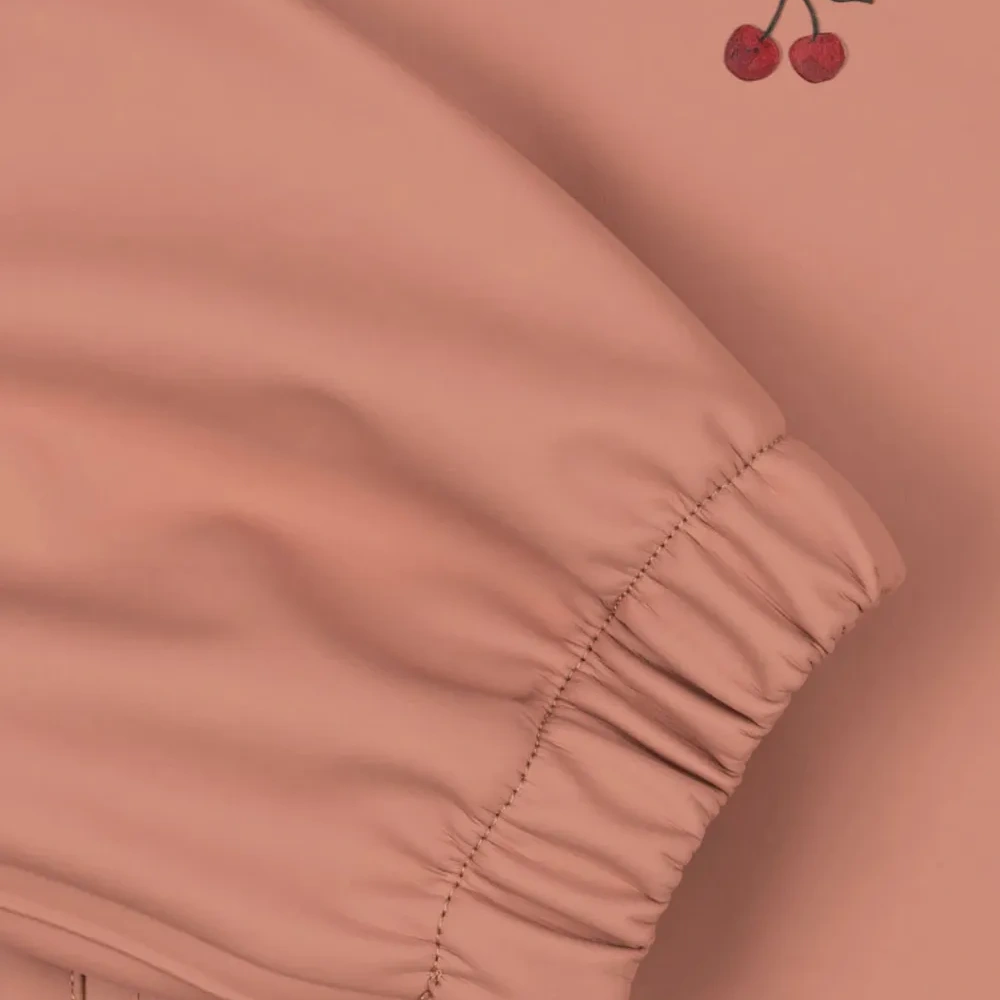 розовые эластичные манжеты, капюшон, вишневый мотив, застежка на кнопки